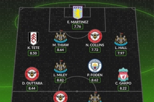 体育资讯12月1日讯 本轮英超已经完赛,whoscored也统计了本轮英超评分最佳阵,纽卡4将在列、布伦特福德3人入围。