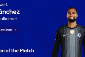 英超官方赛后宣布,桑切斯当选为本场比赛最佳球员。数据统计显示,他本场共计5次扑救。