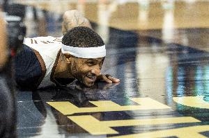 老鹰名宿威尔金斯和詹姆斯合影:赛后和你聊上几句很开心