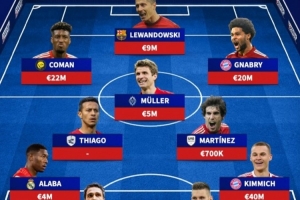 后卫:阿拉巴(皇马,400万)、胡梅尔斯(退役)、聚勒(多特,500万)、基米希(4000万)
