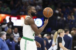 上半场,凯尔特人球星杰伦·布朗表现非常抢眼,打了19分钟18投11中,三分7中4、罚球1中1砍下27分5篮板5助攻3抢断,正负值+13。