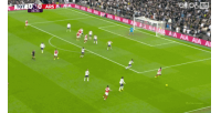 前场右侧萨卡盘带后到了底线倒三角回传,埃泽把球停起来直接凌空抽射破门!