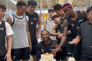 广东队全队为萨林杰庆生!这次没有标配的摁头吃蛋糕了!
