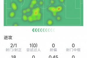 约克雷斯本场数据:1粒进球,2射1正,1次错失良机,1关键传球