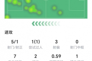 约克雷斯本场数据:1粒进球,2射1正,1次错失良机,1关键传球