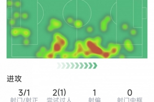 约克雷斯本场数据:1粒进球,2射1正,1次错失良机,1关键传球