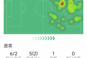 约克雷斯本场数据:1粒进球,2射1正,1次错失良机,1关键传球