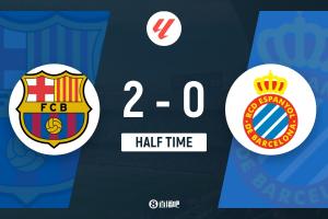 体育资讯4月12日讯 北京时间4月12日00:30,西甲第31轮巴塞罗那迎战西班牙人的比赛在诺坎普球场进行,上半场亚马尔助攻费兰头球破门闪击得手,随后亚马尔再度助攻费兰推射破门扩大比分,德米特洛维奇献精彩扑救,半场结束,巴萨2-0西班牙人。